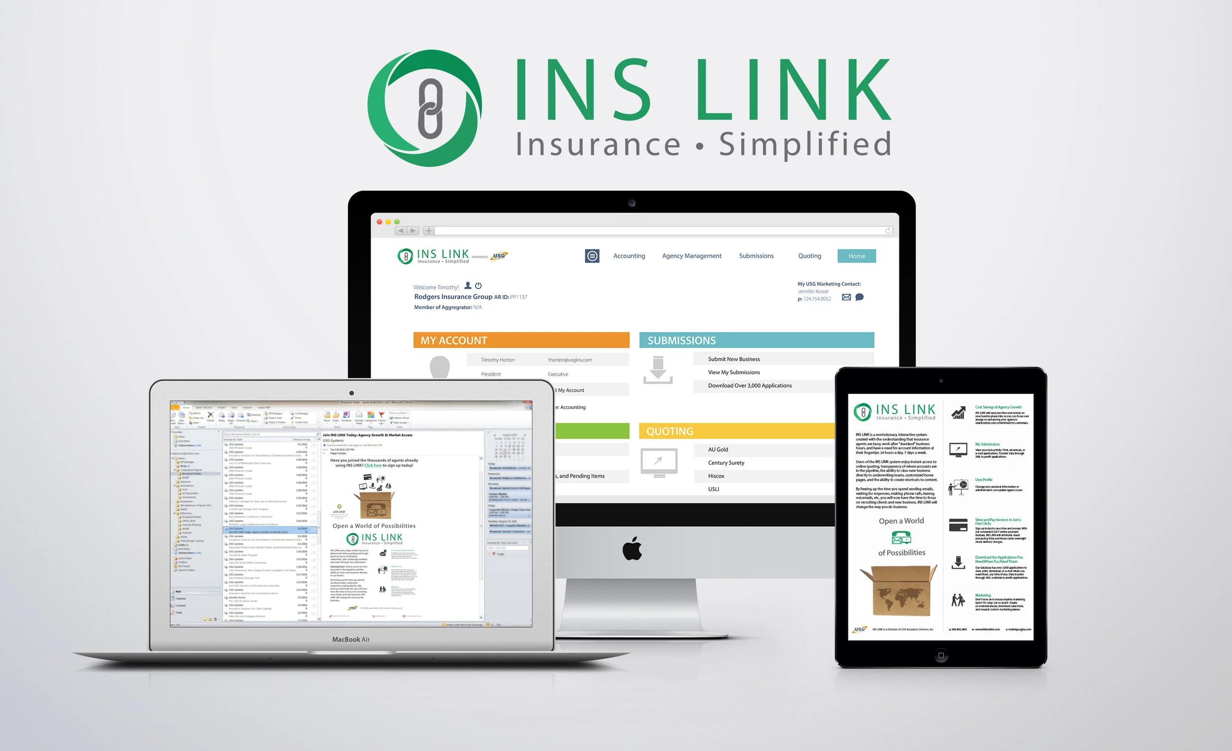Branding for USG's new accounting portal, INS Link. I created everything from the logo to the wireframes passed off to the developers.